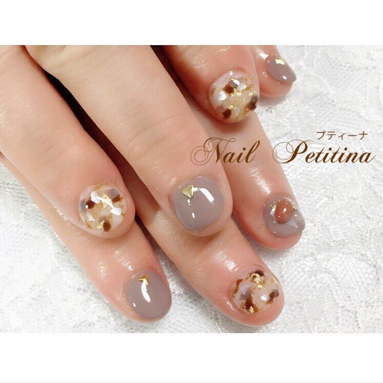 秋 冬 べっ甲 ショート グレージュ Nail Petitina プティーナ のネイルデザイン No ネイルブック