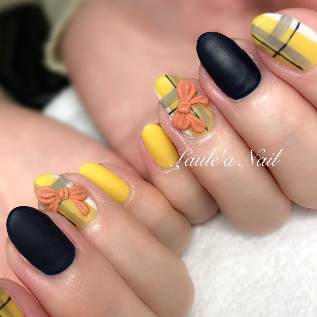 ネイビー マスタード マットコート Etoile大垣店所属 岡田 実千代のネイルデザイン ミニモ